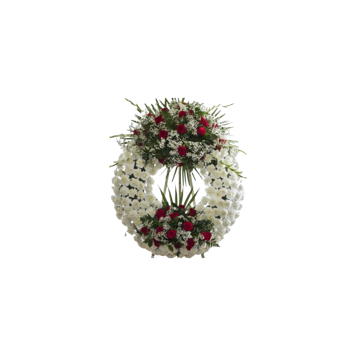 corona de difunto blanca con dos cabezeros de rosas